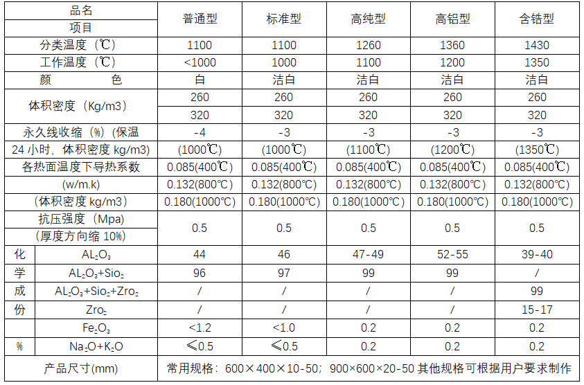 ★各種硅酸鋁纖維板,采用對應(yīng)的普通型、標(biāo)準(zhǔn)型、高純型、高鋁型、含鋯型硅酸鋁纖維棉作原料,用真空成型或干制法工藝經(jīng)干燥和機加工精制而成。